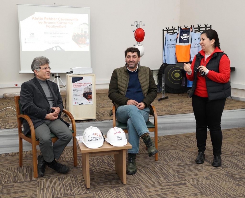 Program sonunda öğrencilerin alana dair soruları yanıtlandı. Akabinde arama kurtarma faaliyetleri ve afet anı yönetimine dair bilgi veren Koçak ve sahadan ARÇ adına birebir deneyimlerini aktaran Kurultay hocalarımıza hediyeleri takdim edildi.