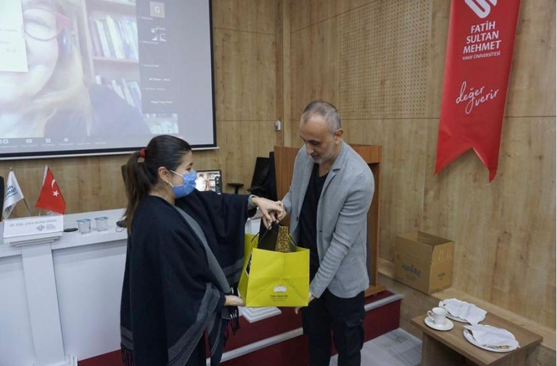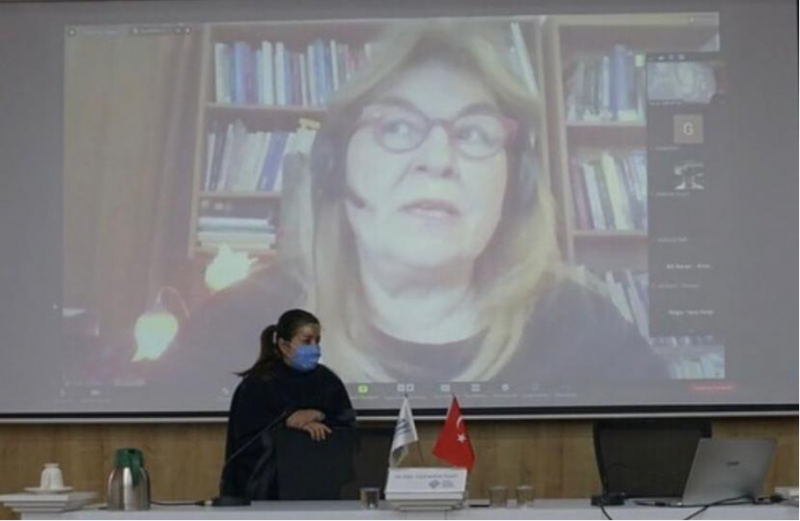 Hacettepe Üniversitesi İngilizce Mütercim ve Tercümanlık bölümü başkanı Prof. Dr. Aymil Doğan, konferans sonunda sürpriz bir katılım gerçekleştirdi. Zoom üzerinden bağlanan Doğan, çeviriden, çevirmenlik eğitimi ve kariyerinden, son olarak Türkiye’de sektördeki genç çevirmen ihtiyacından bahsetti. Ayrılmadan önce gelecekte bölümümüzde konferans verme sözü verdi.