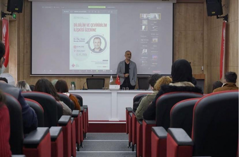 Bölümümüzün düzenlediği “Dilbilim ve Çeviribilim İlişkisi Üzerine” başlıklı konferans 5 Ocak 2022 tarihinde üniversitemizin Üsküdar yerleşkesinde gerçekleştirildi. Alanının önemli isimlerinden Dr. Öğr. Üyesi Burak Özsöz’ün katılımıyla gerçekleşen konferans eş zamanlı olarak Zoom üzerinden de yayınlandı.