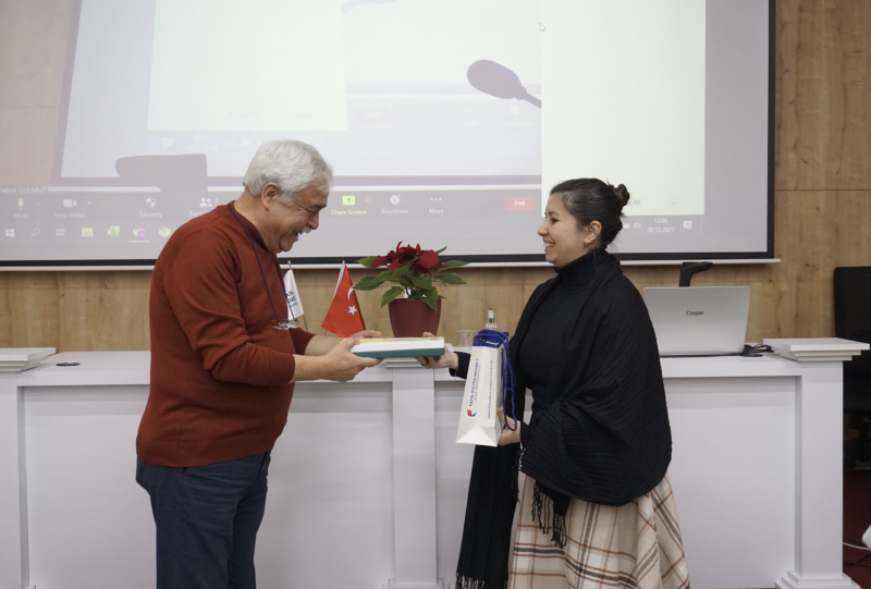 Son olarak İngilizce Mütercim Tercümanlık Bölüm Başkanı Dr. Rana Kahraman Duru konuşmaya emek veren hocamız Prof. Dr. Necdet Neydim’e hediyelerini takdim ederek bu başarılı konferansın daha geniş kapsamda ele alınarak bir kez daha gerçekleştirilmesinin önemini vurguladı.